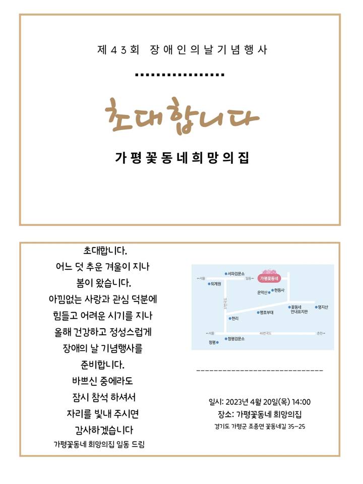 2023년 4월 20일 14시 가평꽃동네 희망의집에서