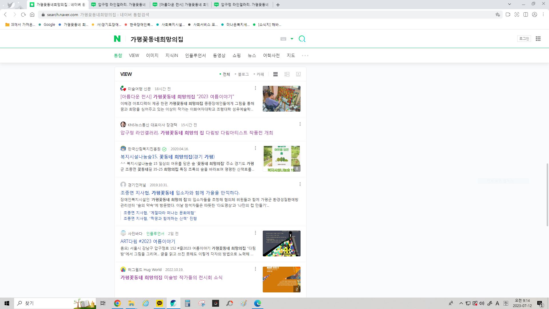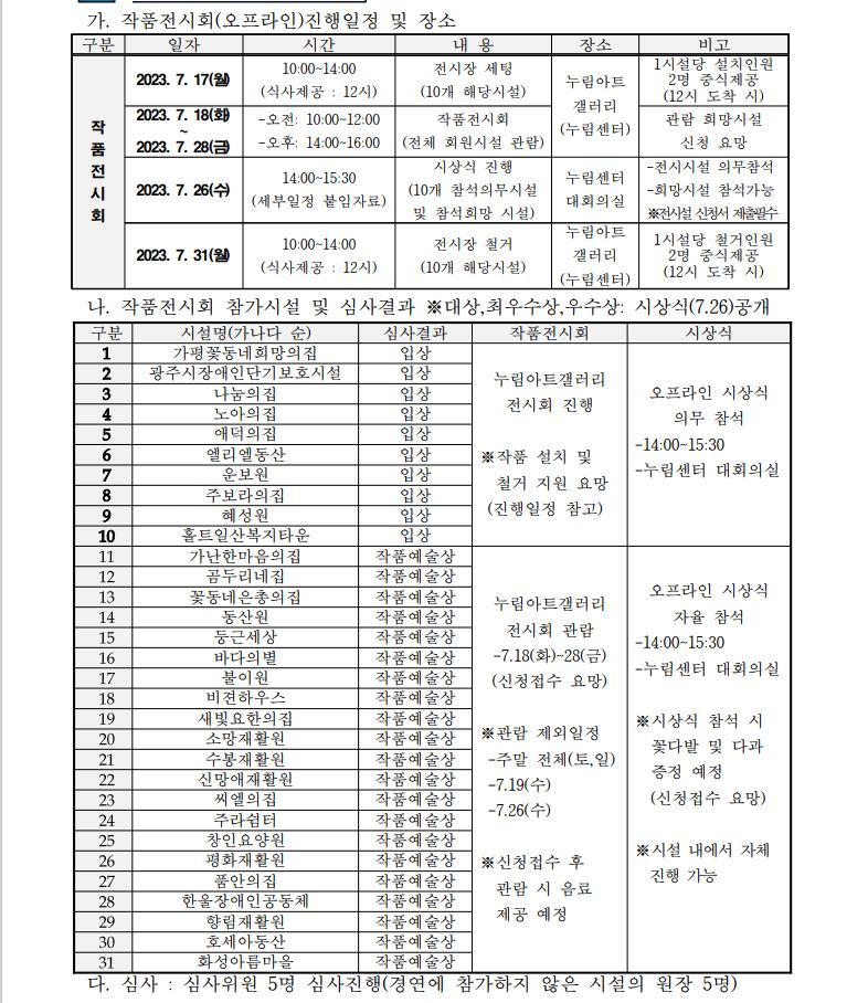 제23회 경기도 시설장애인 작품전시회에 우리 가평꽃동네희망의집 미술반 다림 이용인들의 작품도 같이 전시합니다.