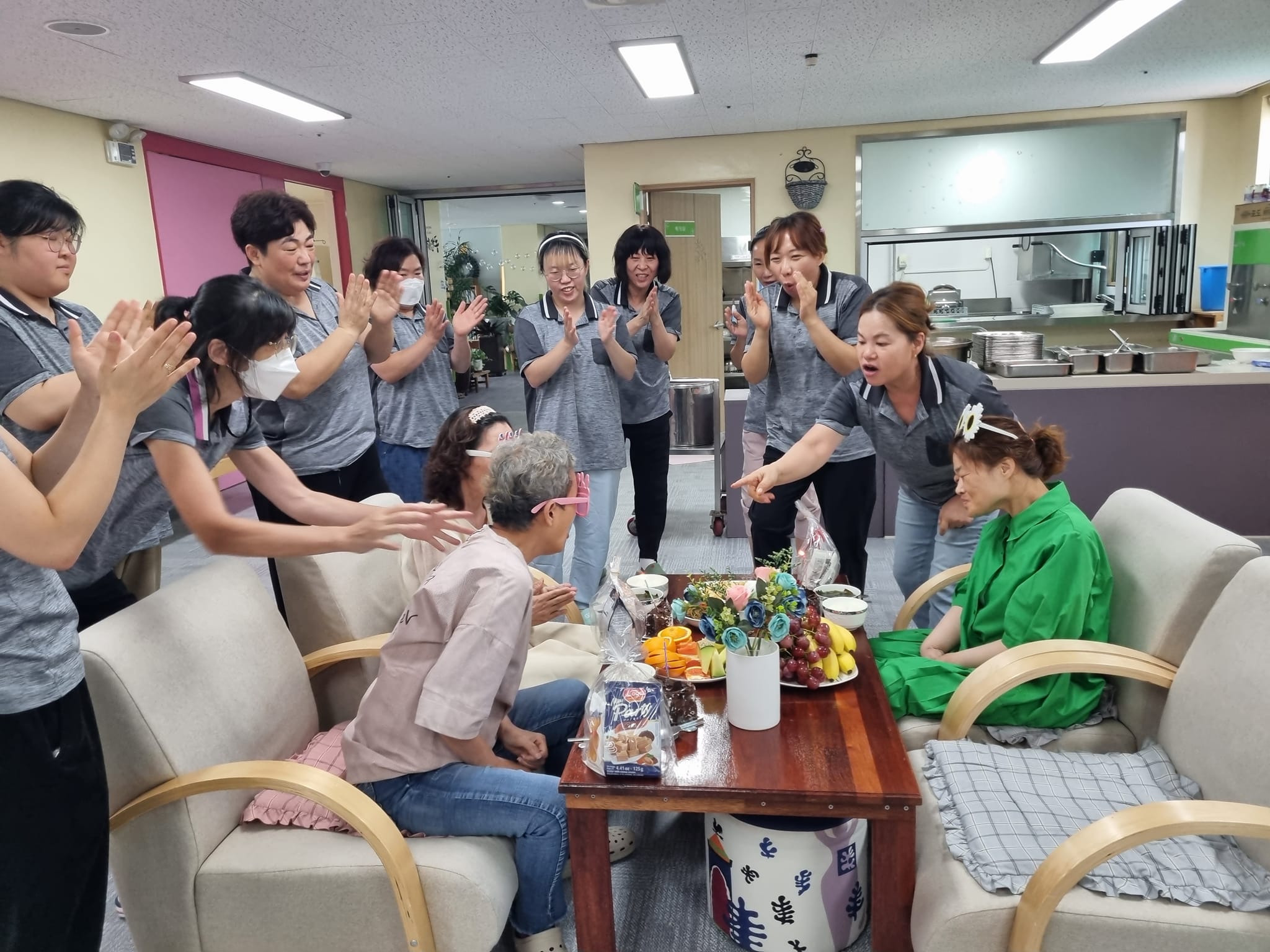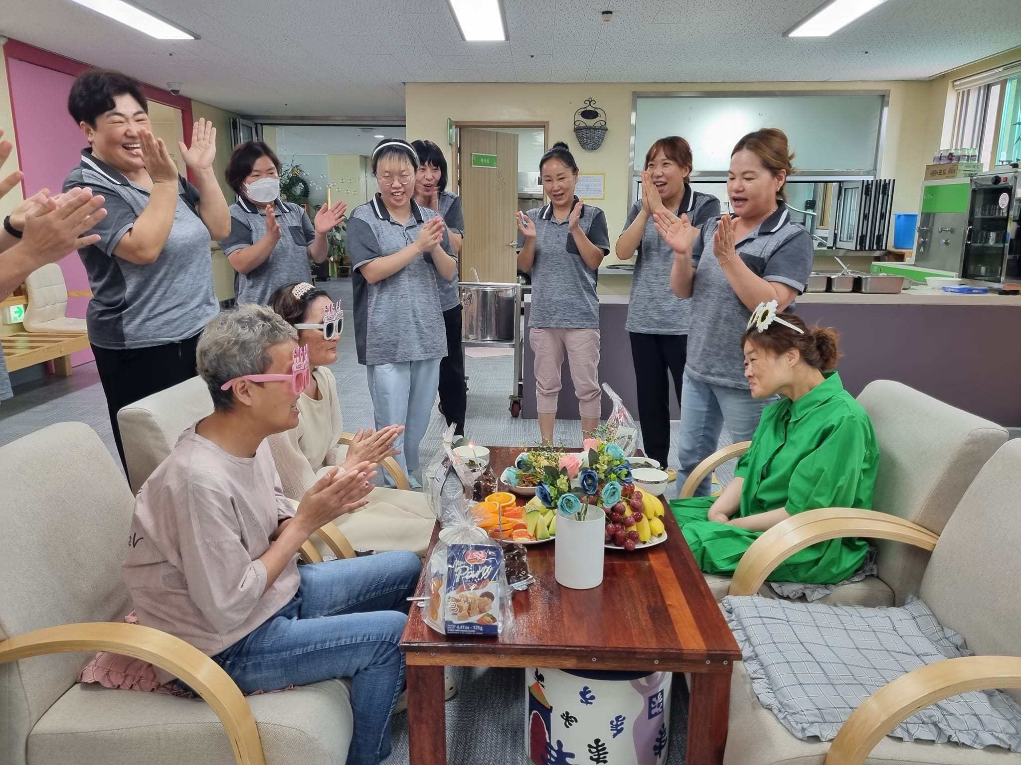 생활복지2팀에서 9월달 생일을 맞은 이용인을 위해 '생신잔치'를 준비하여
