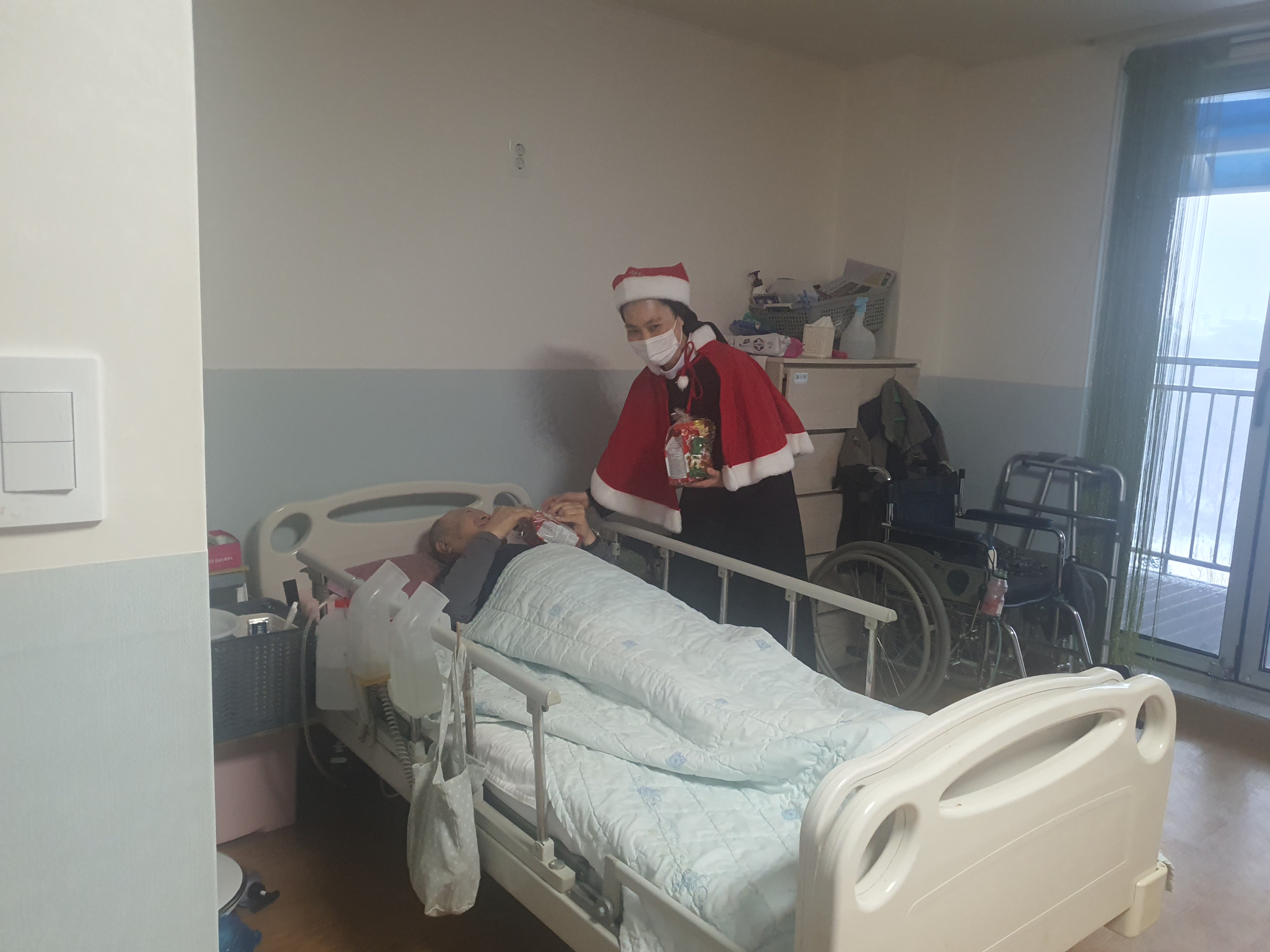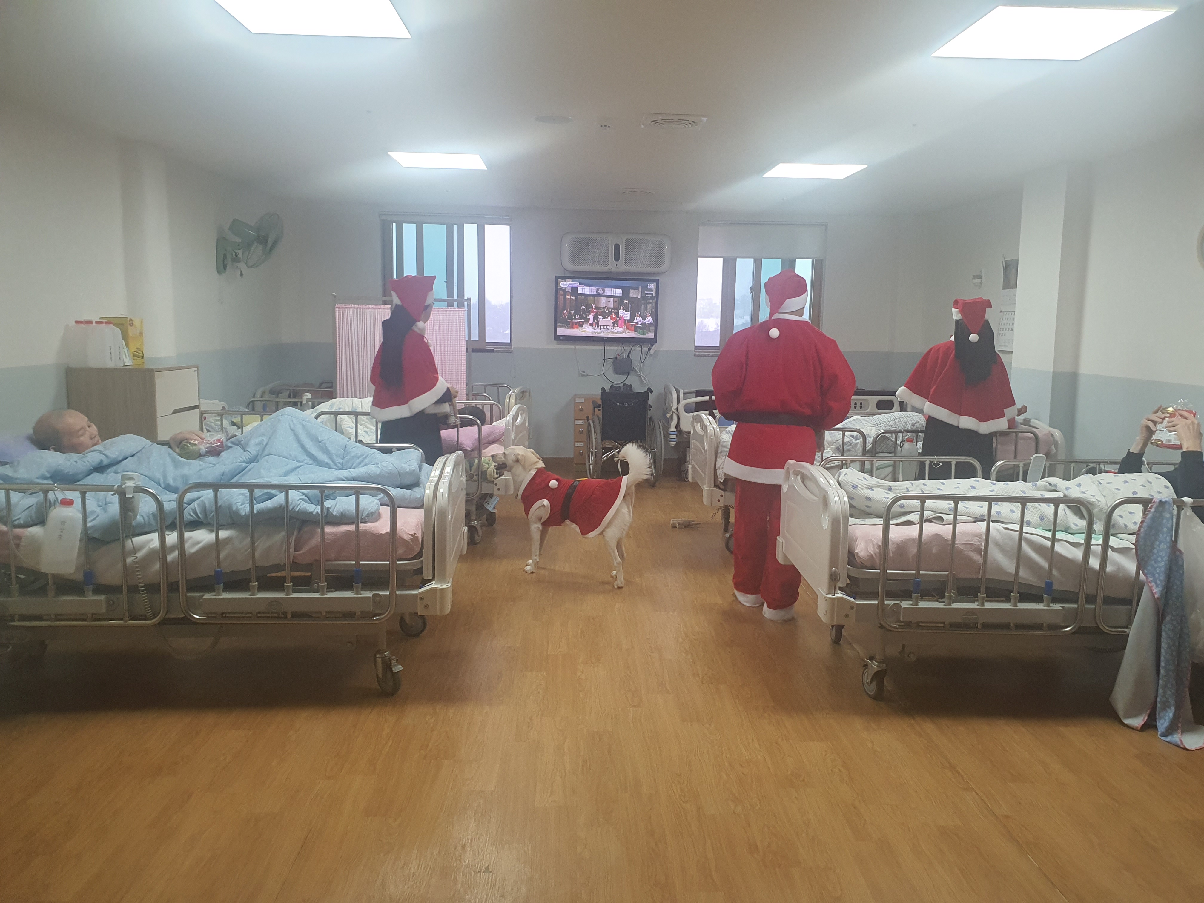 산타복을 입고 각층별로 돌면서 선물을 나눠주었습니다.