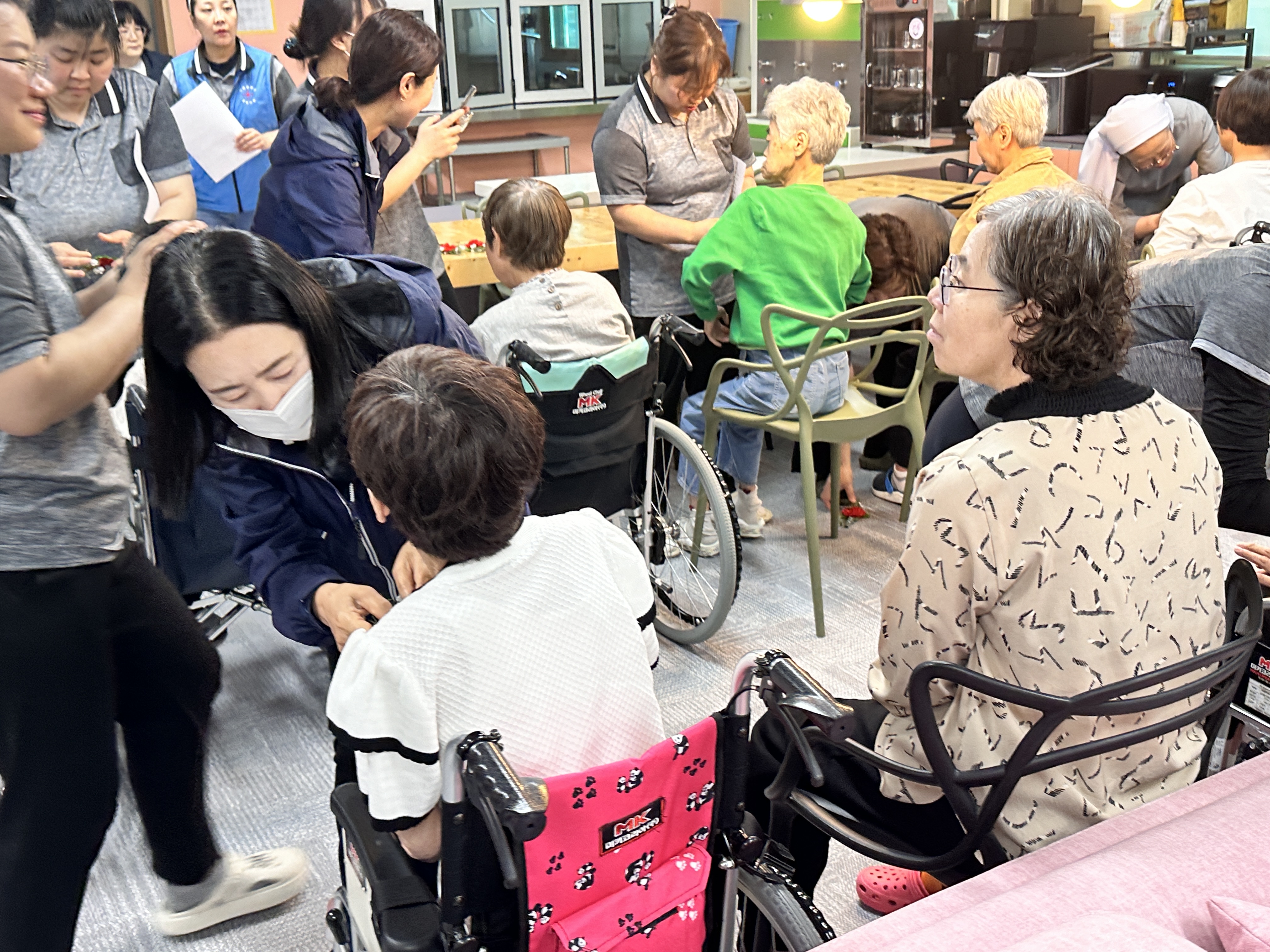 소중하게 준비한 카네이션을 이용자들 가슴에 달아드렸습니다.