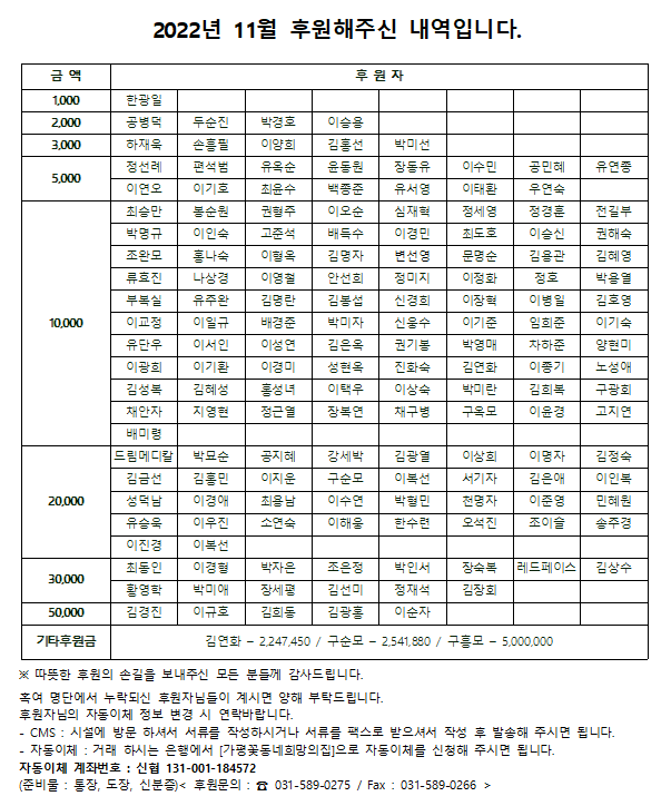 따뜻한 후원의 손길 보내주신 분들께 감사드립니다.